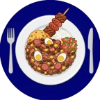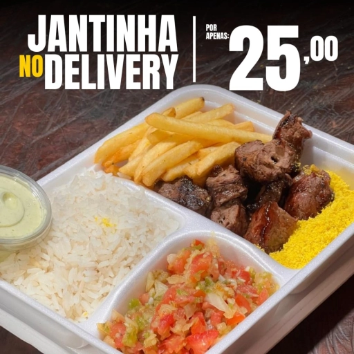 Arroz, batata frita, vinagrete, farofa e maionese caseira.